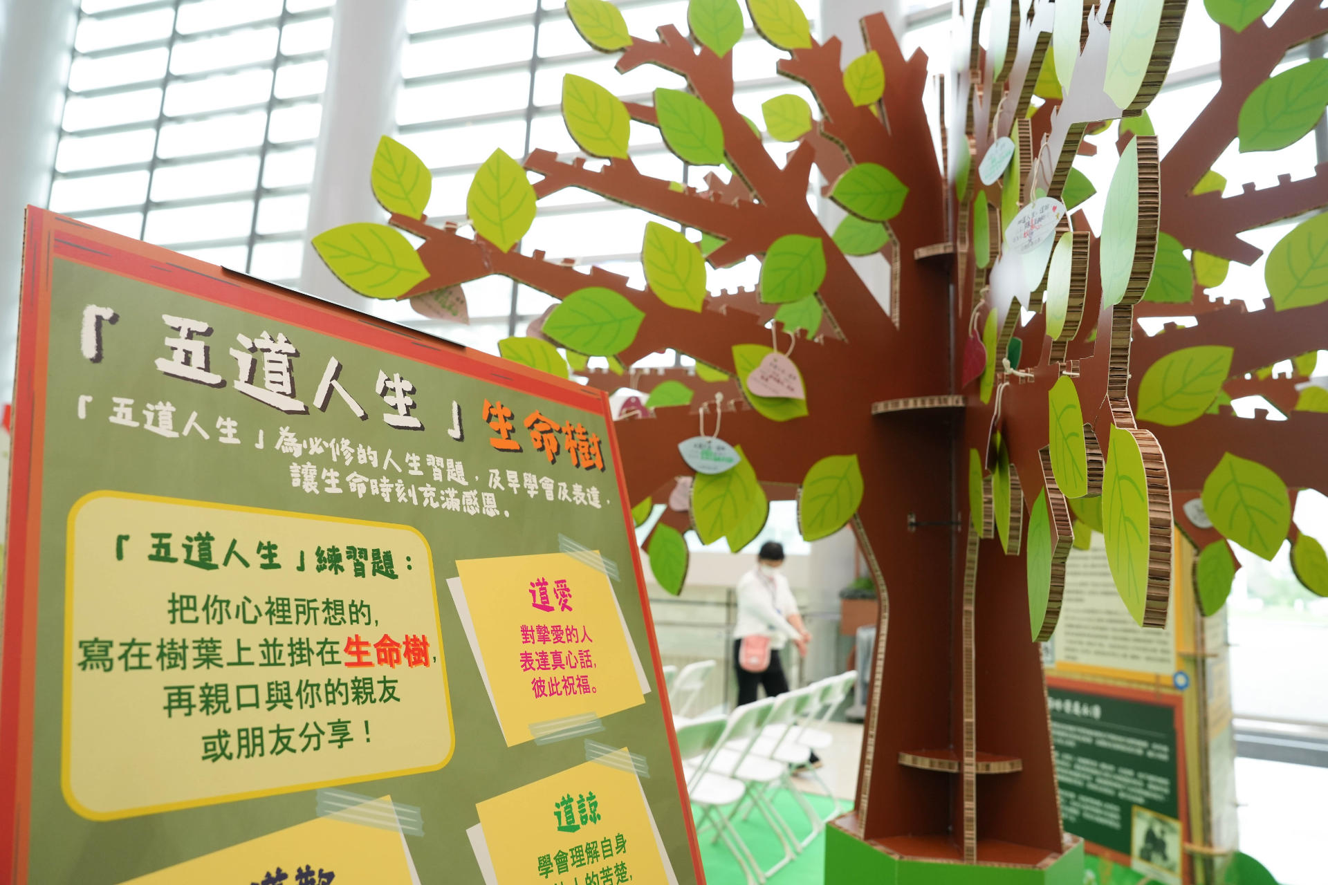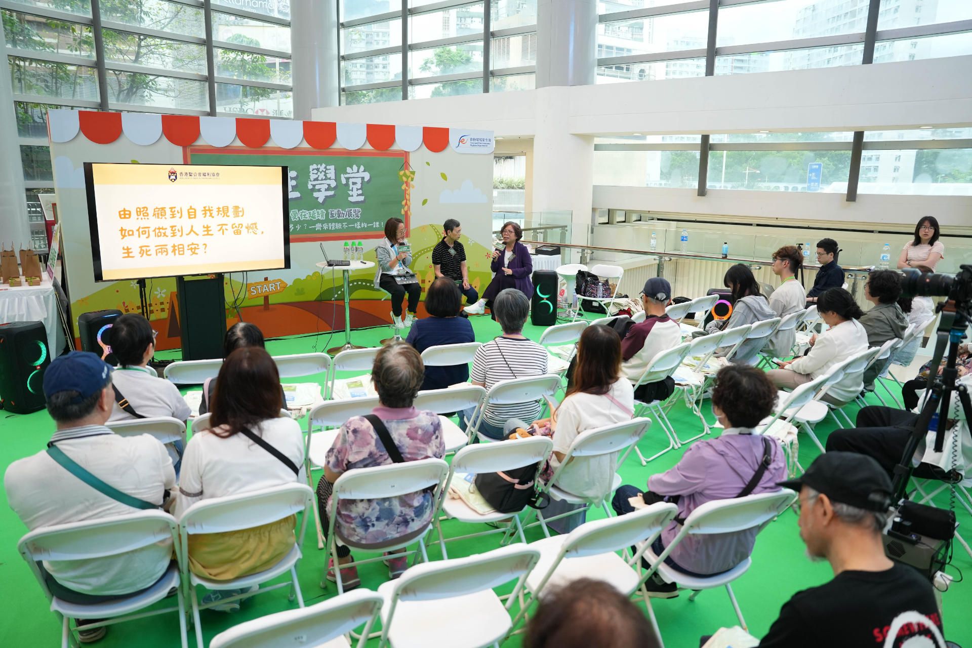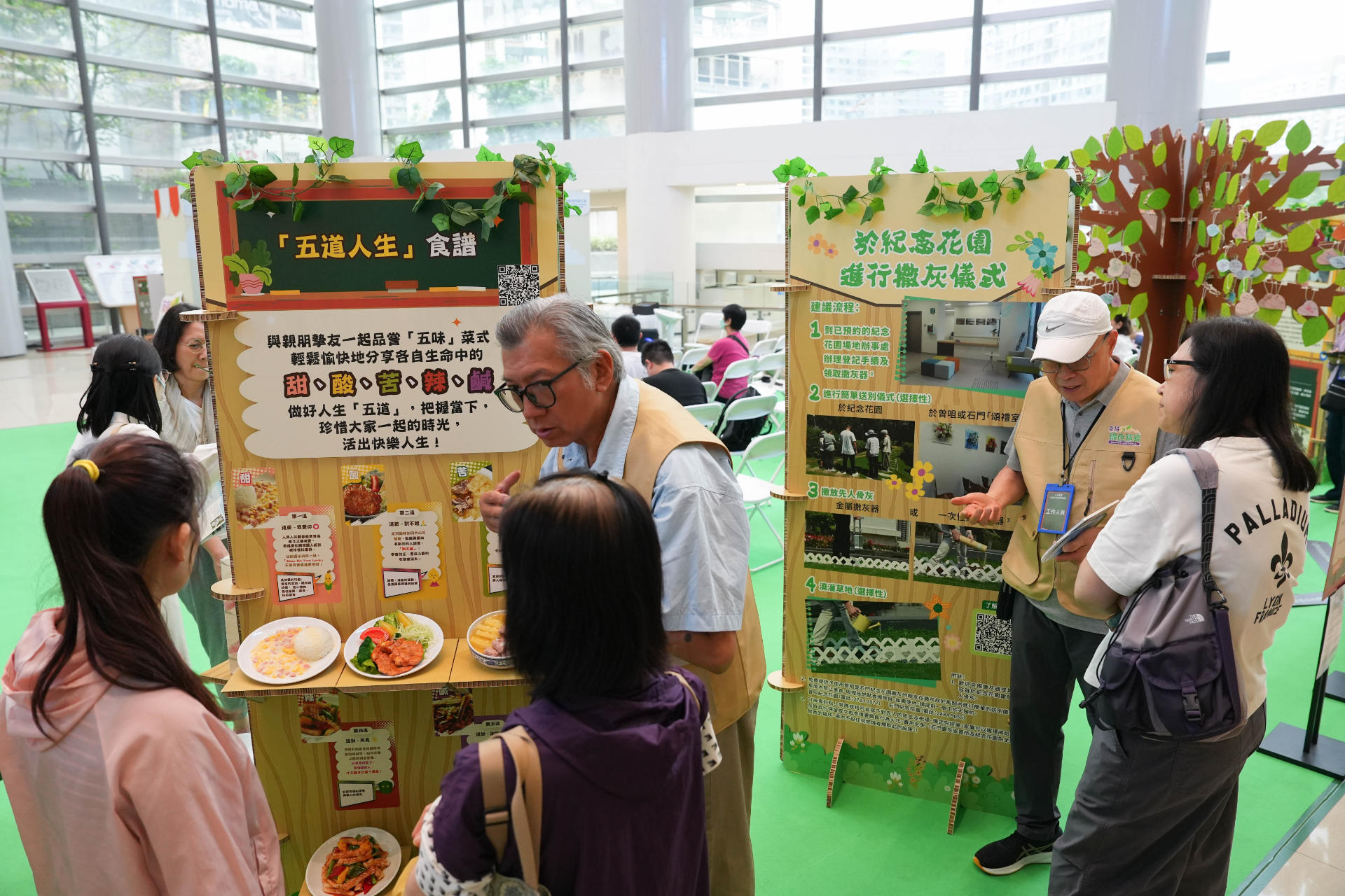 FEHD organized “School of Life - Interactive Exhibition” over two consecutive days starting from 11 April at UG2 Atrium, Zone B, Lok Fu Place, Wong Tai Sin. The event incorporates guests’speeches on life planning, “Five Ways of Life” themed tree art and AI-powered interactive experience. Multiple organizations also set up exhibition booths to introduce enhanced services on life arrangements and green burial. On-site registration for the Green Burial Central Register and free registration on guided tour to Garden of Remembrance was also provided.