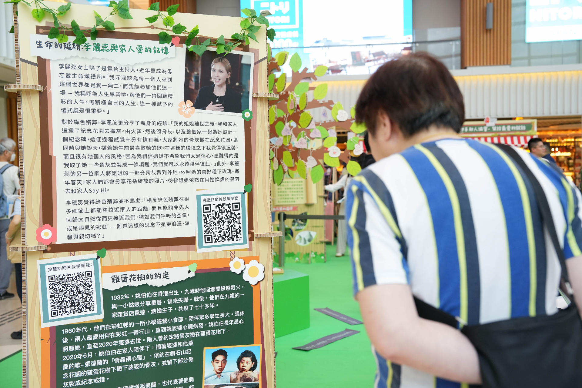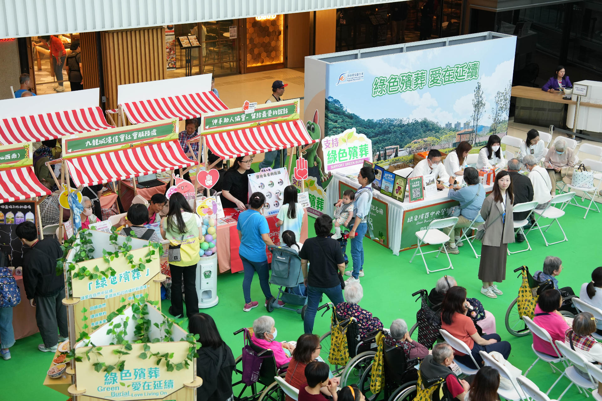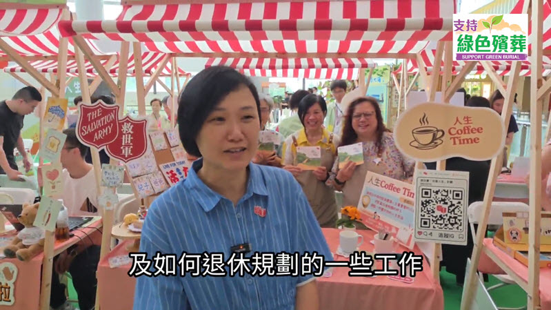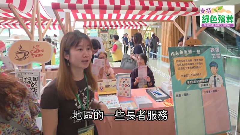 The first "Green Burial Love Living On" promotional exhibition with the theme of "School of Life" was successfully held in Tseung Kwan O Plaza in August 2024. The activities included sharing experience in life and death planning by a number of star guests, introduced the enhanced services of green burial, and showcased touching life stories. There were also service counter for registration of GBCR and guided tours.