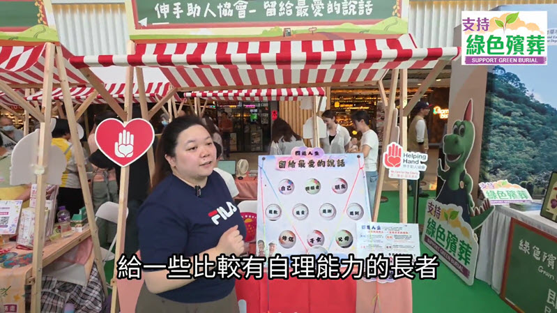 "School of Life - Life and Death Expo" at Yau Tong Community Hall was successfully held in October 2024. The event introduced to the public how to make last mile of planning from different perspectives, exploring what is Advance Care Planning (including wills, after-death arrangements, etc.), cancer support, dying-in-place and bereavement support, etc. Booths and exhibitions were set up by relevant service organisations etc., to encourage members of the public to adopt a more environmentally friendly and sustainable way of handling cremains, and to make pre-life planning well in advance. The following are reference videos and photos of the event.